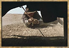 is tied to tent pole and discovered by Indiana.