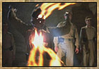 as Indiana is silhouetted against a burning
