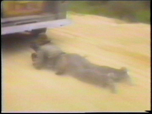 under the front of a moving Nazi truck (1964
