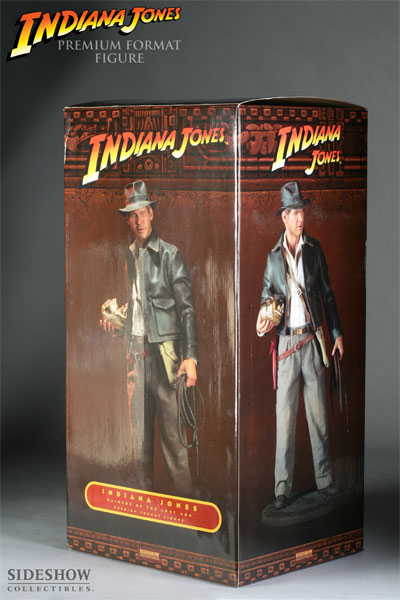 The Premium Format Indiana Jones figure presents the adventuring archaeologist as he appears in Raiders of the Lost Ark, standing tall with the fertility idol and bullwhip in hand. The figure features a belted holster that houses a removable revolver. (Please note: revolver cannot be held in whip hand.) Down to the tilt of his trademark fedora, each figure is sculpted to Sideshow's museum-quality standards and dressed in an expertly tailored real fabric costume that captures the essence of Dr. Jones. Each piece is hand-cast of high-quality polystone, hand finished and individually numbered.