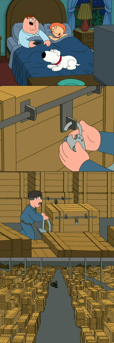 huge government warehouse full of similar wooden