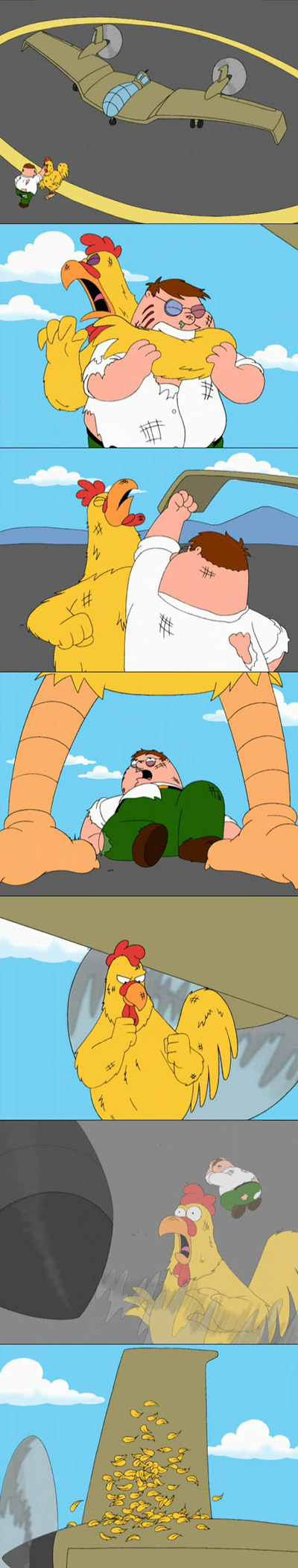 Peter gets in a fist-fight with a giant chicken