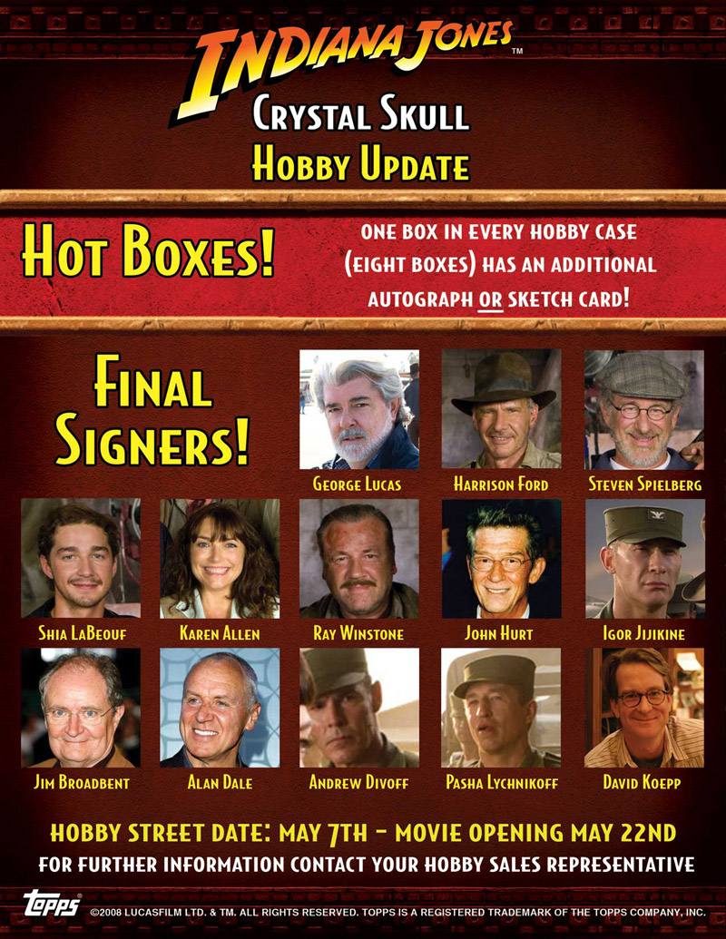Jones and the Kingdom of the Crystal Skull signers for Topps'