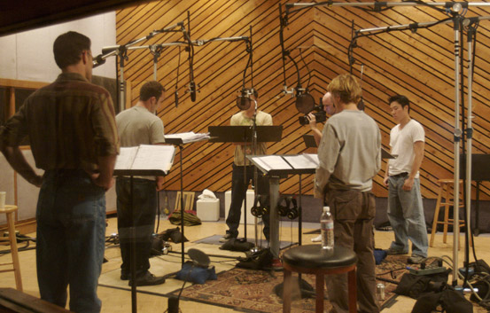 Right: Recording the audio drama The