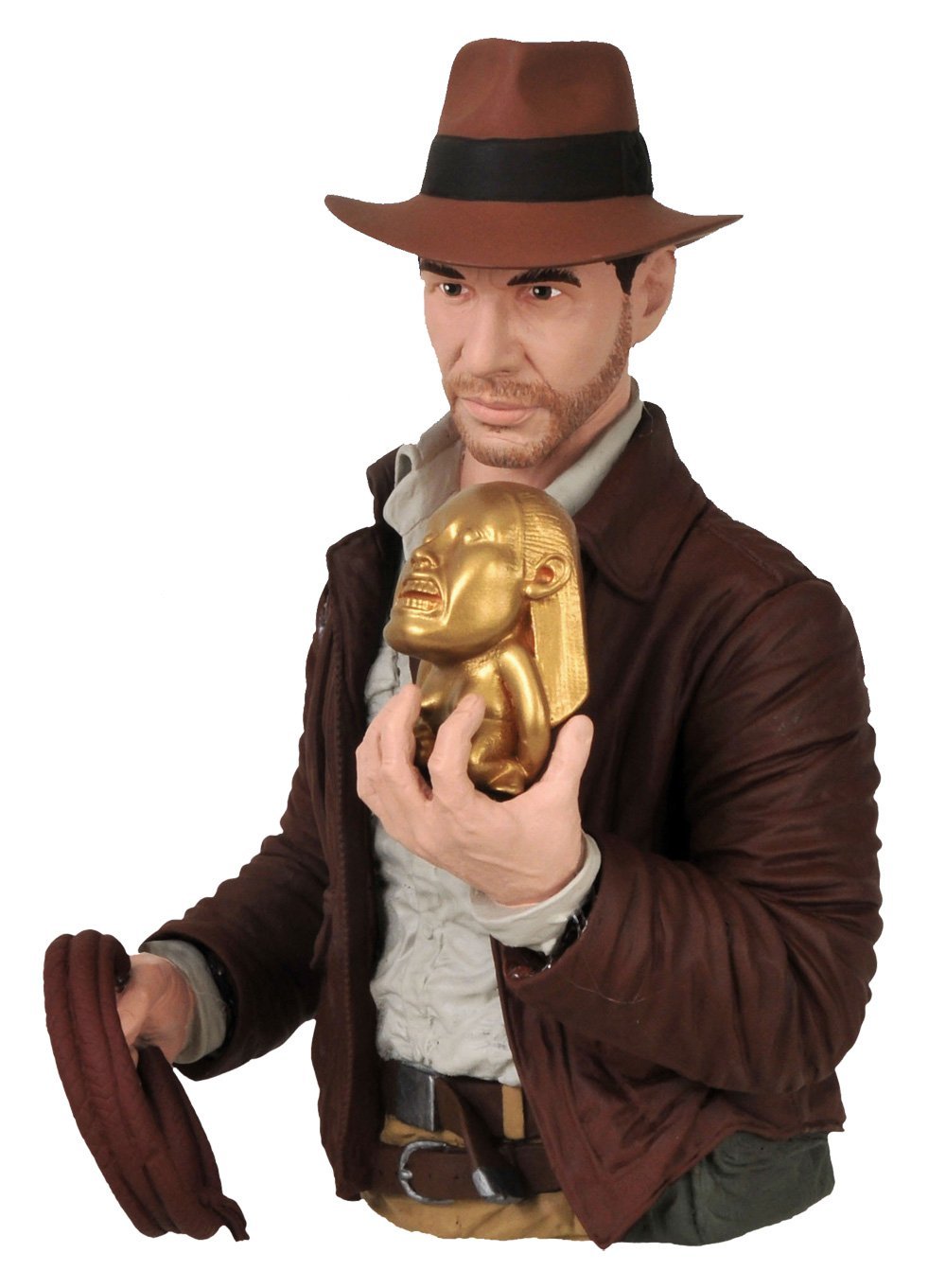 When not busy escaping from Nazis, sneaking across enemy borders and reclaiming priceless artifacts, Indiana Jones has been known to get in a little over his head from time to time! This 6" bust bank was sculpted by Gabriel Marquez and showcases Indy's signature whip and the priceless Golden Fertility Idol as featured in Indiana Jones and the Raiders of the Lost Ark!