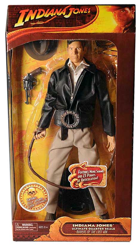 The debut figure in the Indiana Jones Ultimate Quarter Scale line, Raiders of the Lost Ark Indiana Jones delivers the fully articulated nineteen-inch archaeologist as never before! Featuring intricately designed cloth costumes, interchangeable accessories and even sound clips from the Indiana Jones feature films, this hyper-realistic sculpt delivers the ultimate Indiana Jones collectible! Perfect for play or display with the included stand, get ready for a whole new world of adventure!
