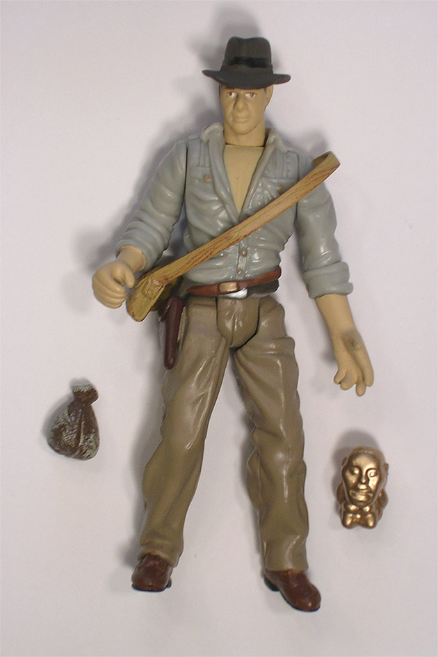 a sand bag, machete, satchel, gold idol,