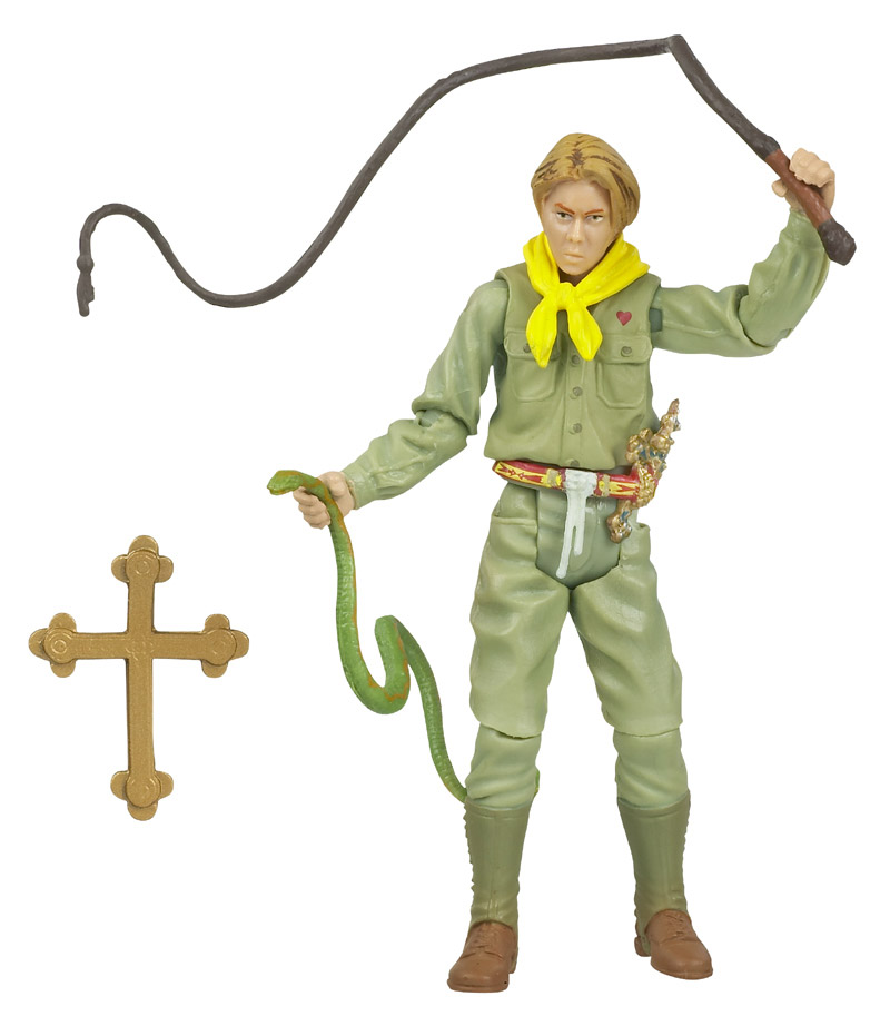 This detailed Boy Scout figure comes prepared! Armed with his trusty whip and a snake that the grown Indy character would surely despise, this younger version of the whip-wielding adventurer comes dressed in his Boy Scout uniform, ready for action! With the "valuable" Cross of Coronado artifact secured to his belt, this fun figure can help you recreate some of the most exciting scenes from the Indiana Jones series. Or use your imagination and stage new scenes of your own as you search to discover the hidden relic!