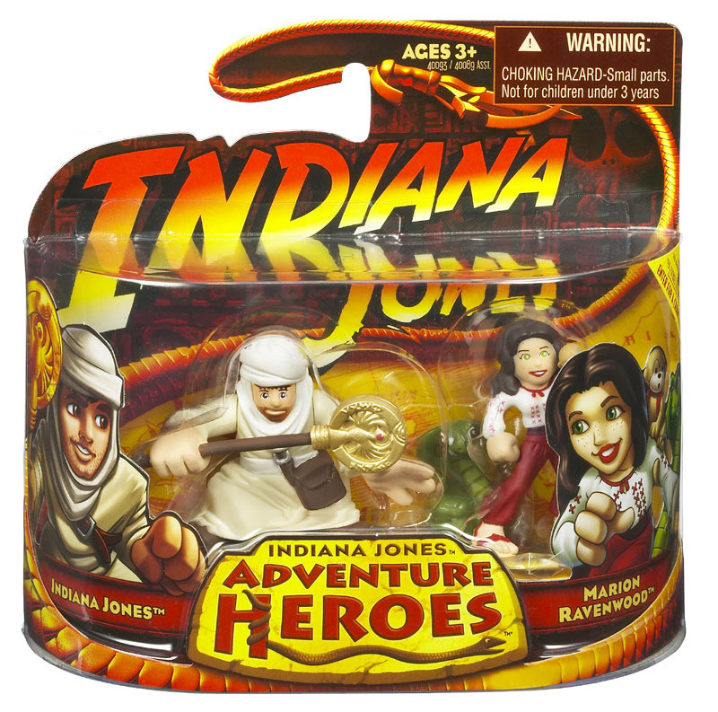 A new adventure begins here! Help the sandal-clad Marion figure escape the venom of the menacing-looking snake figure! Then team up with this fun Indy figure, disguised in a robe and head wrap, and search for the hidden treasure! Recreate exciting scenes from the film, Raiders of the Lost Ark - or create your own adventures! |