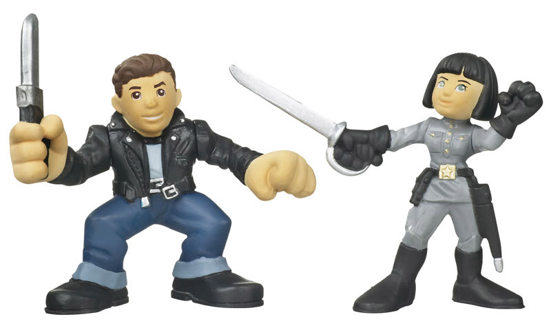 Donning his biker-looking leather jacket and sporting his trusty "blade" weapon, this chunky Mutt Williams figure is ready to take on the sword-wielding Irina Spalko figure in an exciting battle to the finish! Which of these two mini adventure-seekers will emerge victorious? That's up to you! |