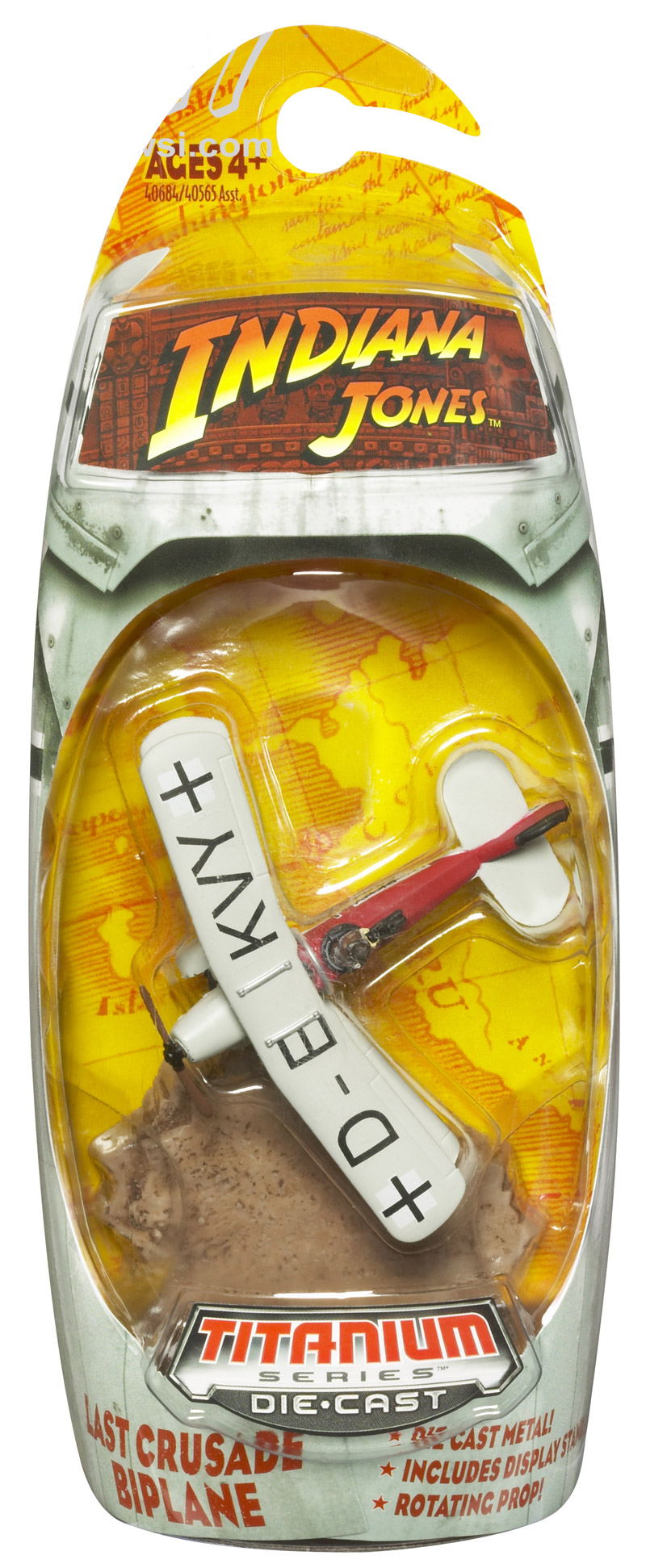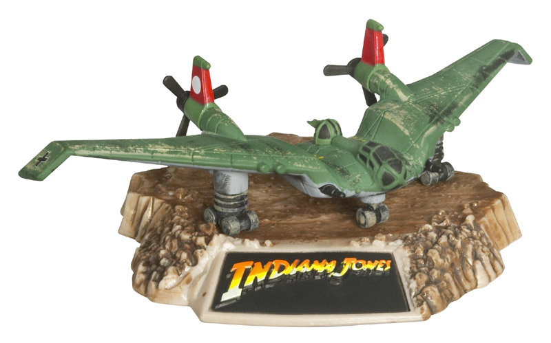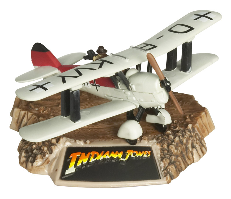 Act out a thrilling Indiana Jones action scene with this scaled-down version of the open-aired flying vehicle. Complete with a rotating propeller and a rear-facing Indiana Jones figure, this die-cast collectible is ready to fly its way into your collection.