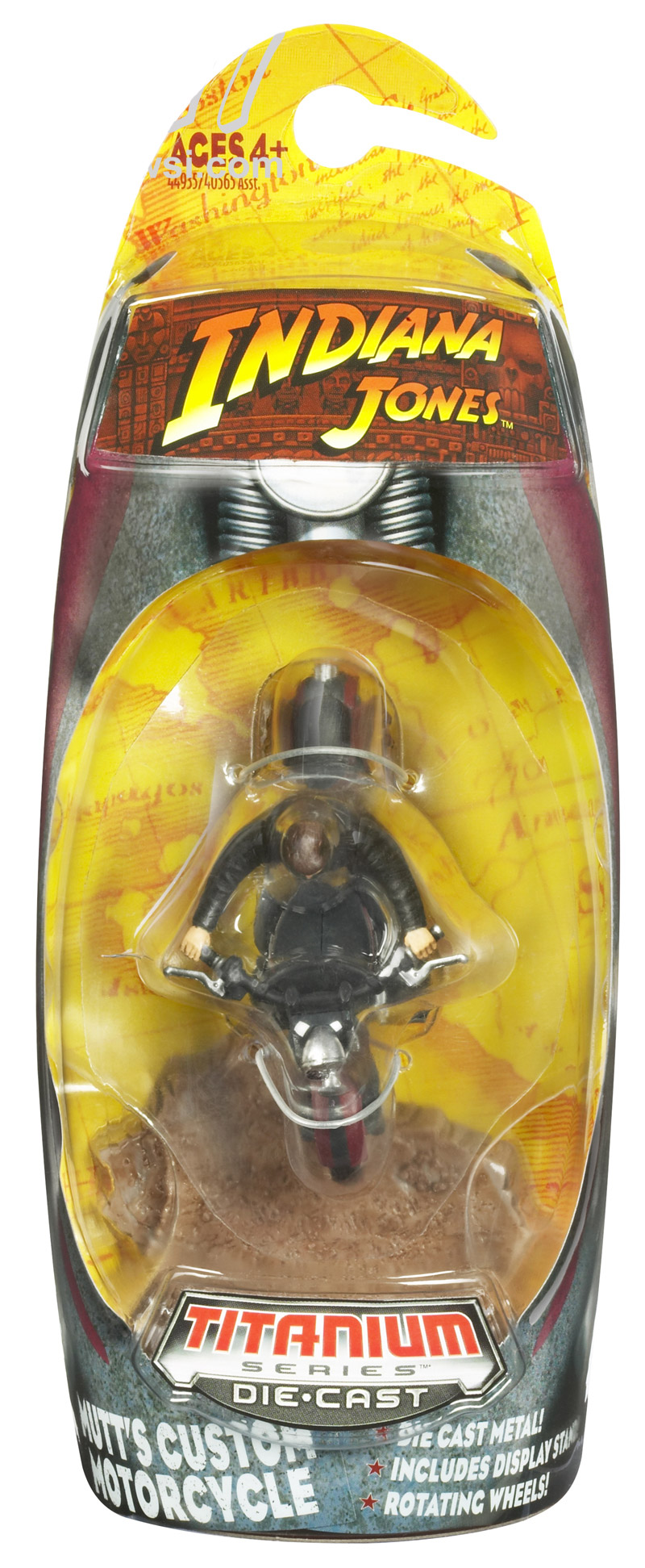 Act out a thrilling Indiana Jones action scene with this scaled-down version of Mutt's motorcycle vehicle, complete with a likeness of Mutt himself behind the handlebars. Rotating wheels and loads of detail make this die-cast collectible a welcome addition to your collection.