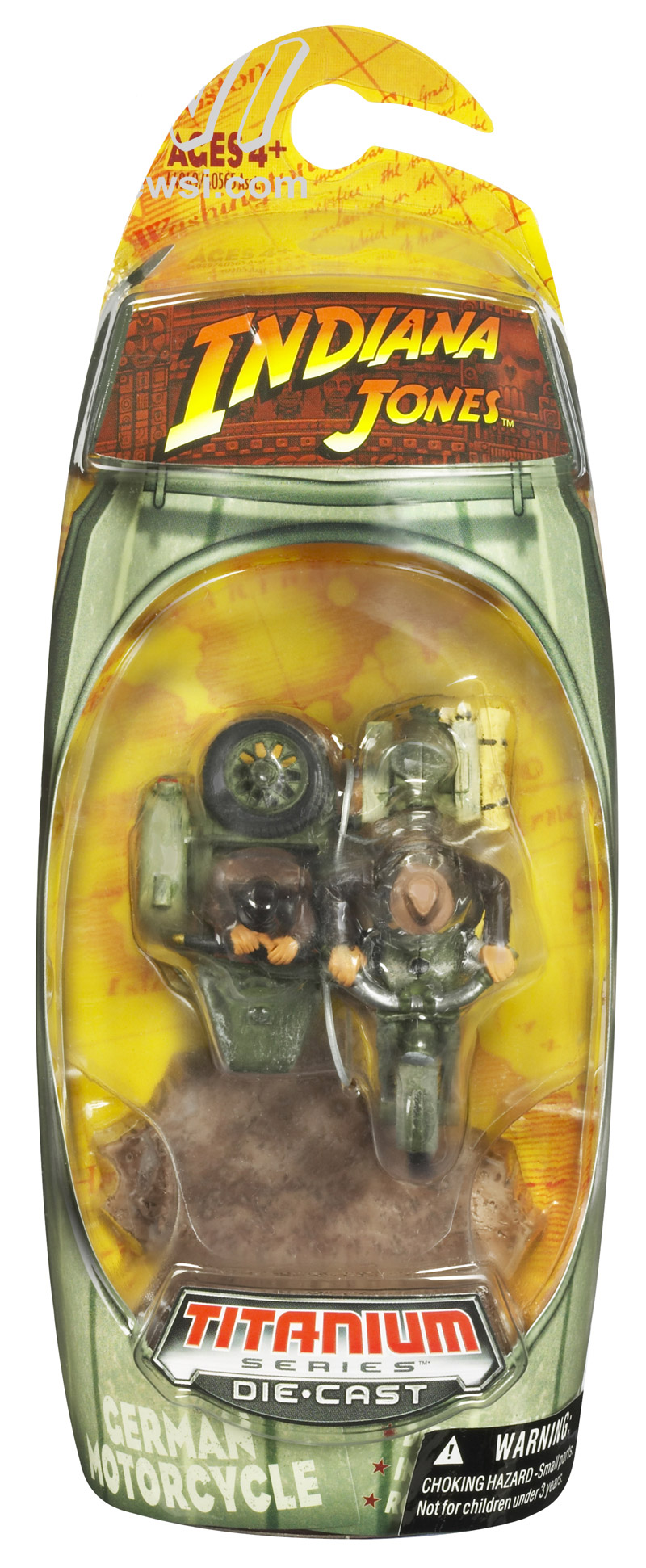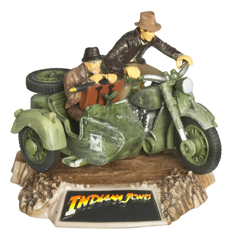 Relive the thrilling Indiana Jones action scene with this scaled-down version of the German motorcycle, complete with an Indy figure at the handlebars and a figure of his father holding on in the sidecar! Rotating wheels and loads of detail make this die-cast collectible a welcome addition to your collection.