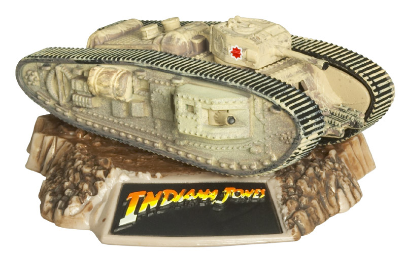 Only a very few of the formidable British Mark VII tanks survived the end of World War I, to be either sold or given to friendly governments in Africa and the Middle East. This one has been retrofitted to add a more modern swiveling turret gun on top, and heavier armor, rather than netting to deflect grenades. Powering its way across the Turkish steppe, it is powerful enough to swiftly destroy an attack by the Grail Cult. However, it proves vulnerable to the resourcefulness of Indiana Jones, and plunges to its destruction after a desperate running battle.