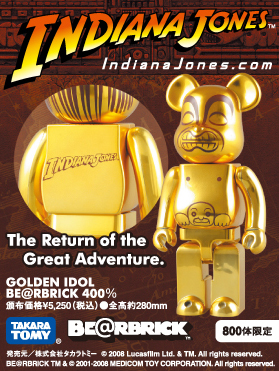 This 70% size keychain was included with preorders of the Indy 4 Blu-ray, DVD or DVD box set from September 19 to November 6 2008. During this time a 3000% size 2 meter high version toured stores in the Tokyo area.