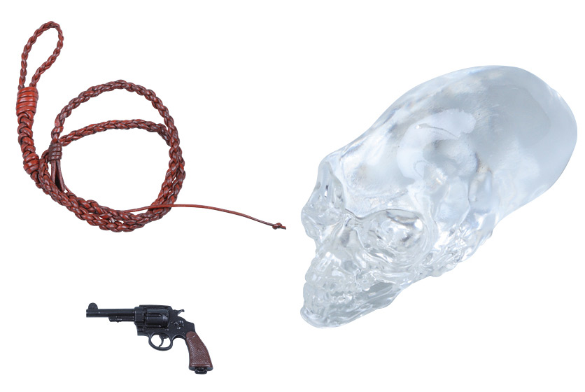 This 400% size version comes with a whip, machete, gun, and small idol.