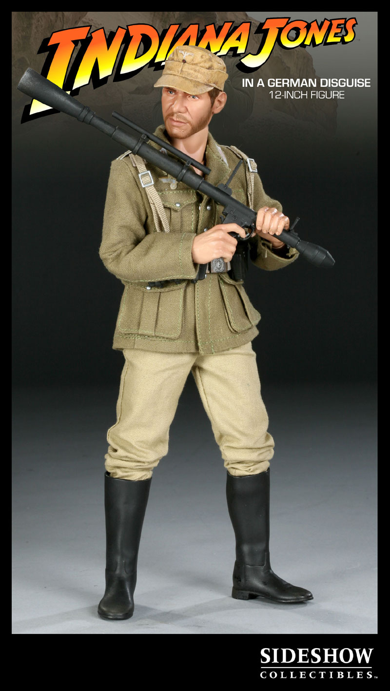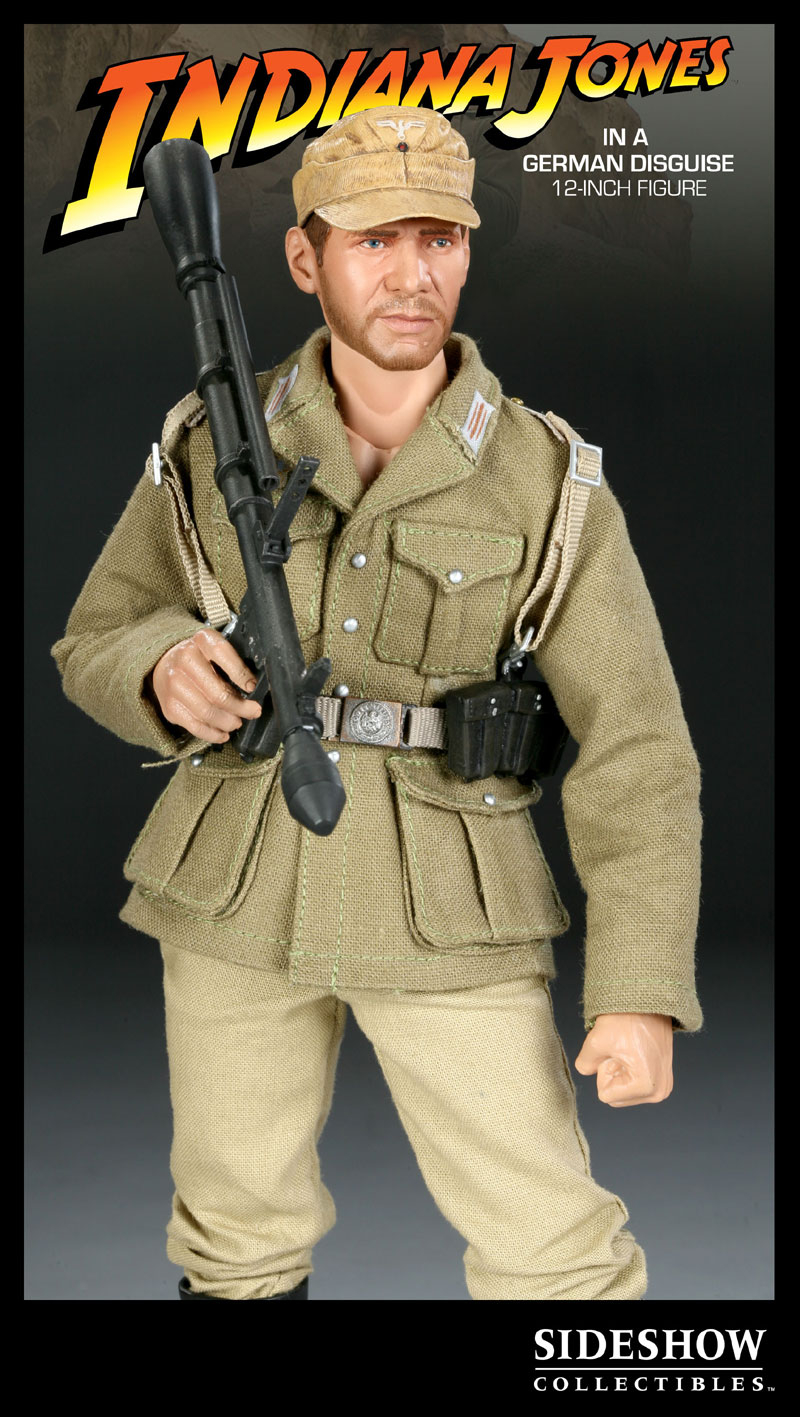What's in the box: 12-inch prometheus male body with 30+ points of articulation, authentic likeness of Harrison Ford as Indiana Jones, shirt, pants, boots, cap, detailed belt with Y-strap harness, KAR 98 pouches, RPG, two sets of interchangeable hands, display base with Indiana Jones logo.