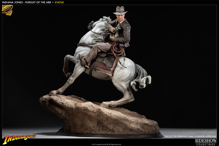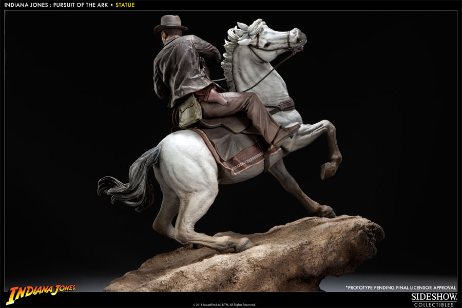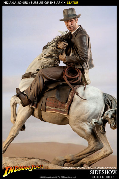 Sideshow Collectibles is proud to introduce the Indiana Jones Pursuit of the Ark statue. Capturing the memorable scene from Raiders of the Lost Ark in stunning 1:5 scale, the newest addition to Sideshow's Indiana Jones collection is individually hand painted and finished with incomparable attention to detail. Measuring an impressive 23 inches tall, atop his borrowed steed, the Indiana Jones Pursuit of the Ark statue makes a noteworthy display for any Indy fan.