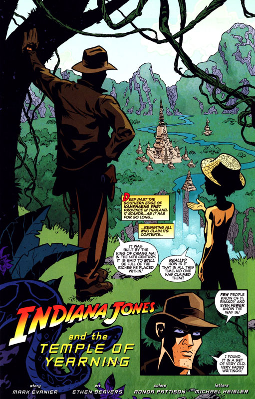 Indiana Jones Adventures is a series of 80 page digest-sized comic books from Dark Horse Comics starting in June 2008 with the first volume. The line is inspired by the style of their Clone Wars Adventures series, but contains one full story per book unlike Clone Wars' anthology format. Temple of Yearning was a 6 page story released on Free Comic Book Day.