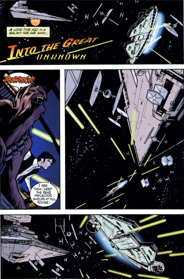 Into the Great Unknown was a 10 page story from Star Wars Tales 19 and collected in Star Wars Tales Volume 5. It is the only known comic to combine Star Wars and Indiana Jones.