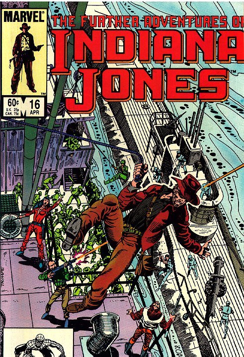 Indiana Jones flies with Jock Lindsey to photograph an abandoned Chinese temple on one of the Aleutian islands. He then hires Simon Katanga's ship, the Bantu Wind, to take him there. They are watched closely by Commander Kyoji Hiroto of the Japanese navy and Emeralda Vasquez, a pirate with a stolen U.S. Navy submarine. Emeralda captures the Bantu Wind, loads the temple's treasures aboard, and destroys the temple. |