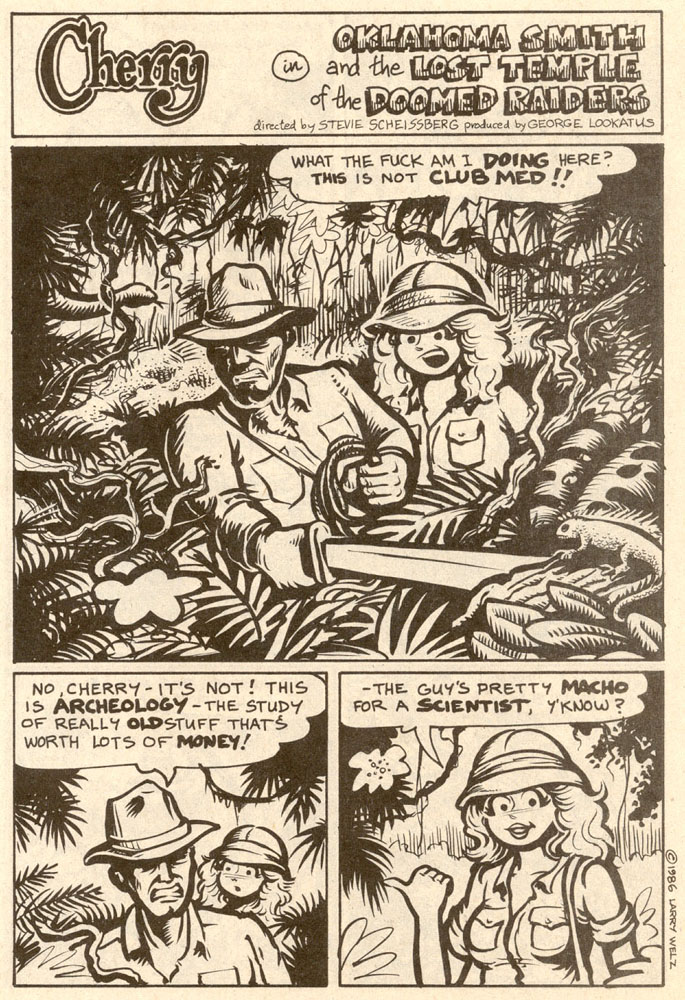 Oklahoma Smith and the Lost Temple of the Doomed Raiders is 9 black and white pages. Cherry Poptart was an adult comic book which ran 22 issues from 1982 to 2000. |
