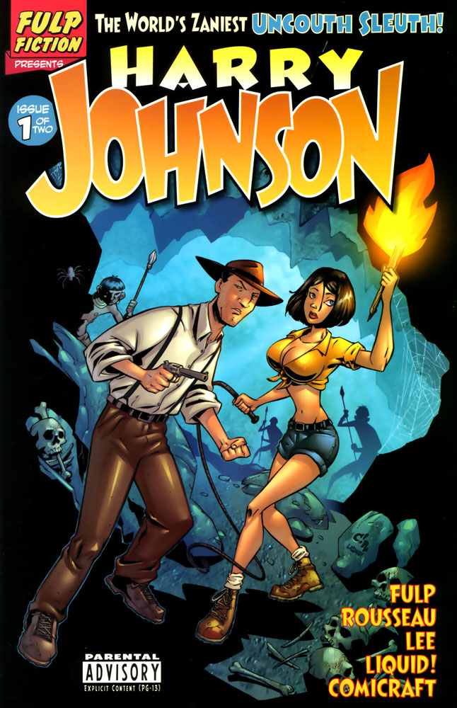 Harry Johnson, Uncouth Sleuth is a 2-part comic story, 36 color pages each. It was collected and reprinted in 2011. It contains many characters and scenarios similar to Indiana Jones, with plenty of double entendres. |