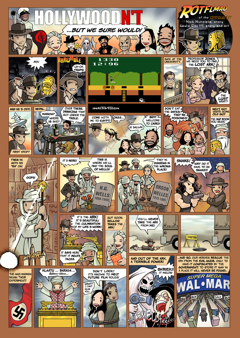 Movie Insider was a British magazine with articles from the CHUD website. It lasted six issues from 2003 to 2004. ROTFLMAO of the OMGWTF is a 1 page color parody of Raiders in the short-lived Hollywoodn't series. |