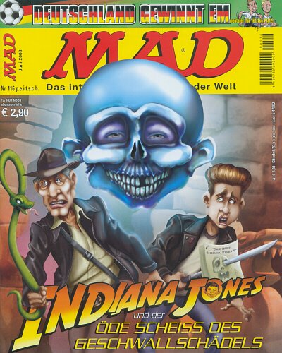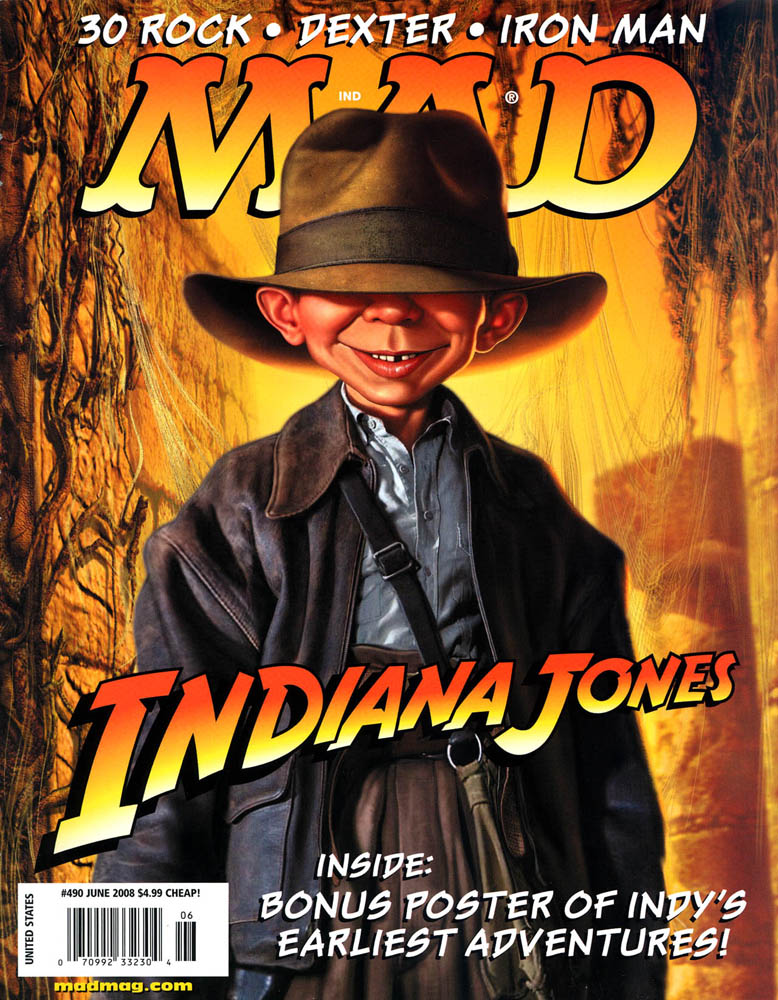 February 2005 #450: Suggested Titles for the next Indiana Jones Movie, June 2008 #490: The Top-Secret Indiana Jones Memo from George Lucas to Steven Spielberg, Embryonic Jones and the Temple of Womb, 10 Things Indiana Jones Hates More than Snakes, Mad Fold-In, September 2008 #493: Inadiaper Jones and the Kingdom of the Creative Dry Spell. |