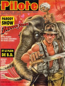 This issue contains a 3 page one color Temple of Doom parody "The Beautiful Stories of Uncle Spielberg." Also: 3 page Oliver Jones and the Cursed Casserole, and editorials The Indy Look, Indiana made in France, The next Indiana Jones, etc. Pilote was a Franco-Belgian comics magazine published from 1959 to 1989. |