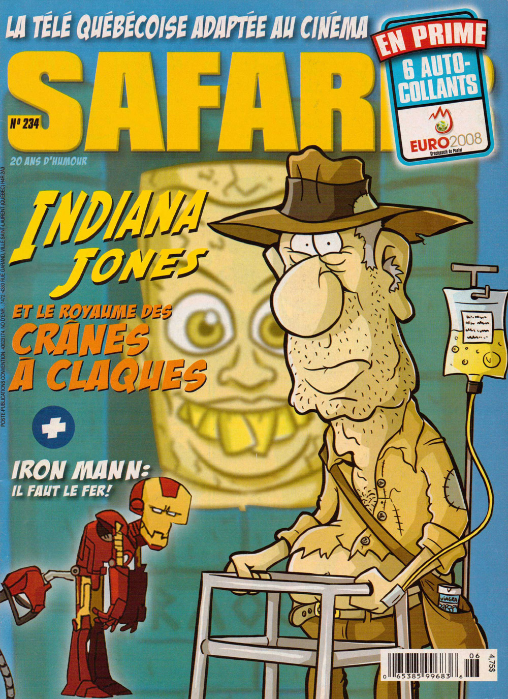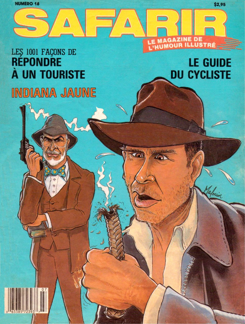 Safarir is a Canadian French-language humour magazine first published in 1987. In 1989, #18 featured a 3 page black and white Last Crusade parody, "Indiana Jaune." In 2008, #234 covered Kingdom of the Crystal Skull. |