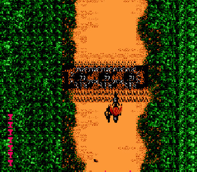 overhead on the motorbike, dodging mines and other